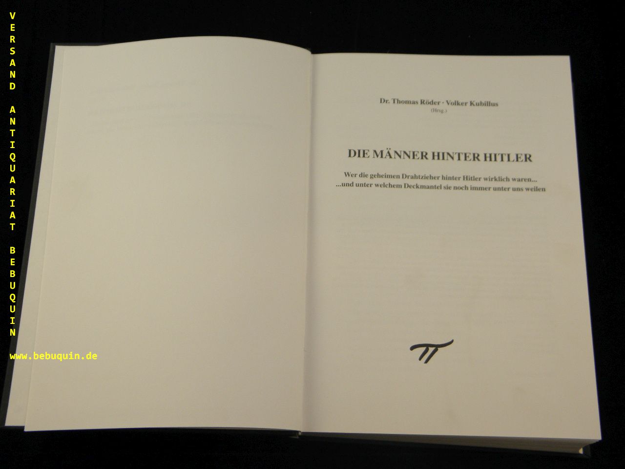 2. WELTKRIEG.– RÖDER, Thomas + KUBILLUS, Volker: (Hrsg.) Die Männer hinter Hitler. Wer die geheimen Drahtzieher hinter Hitler wuirklich waren . . . und unter welchem Deckmantel sie noch immer unter uns weilen. Malters (Pi), 1994. Gr. 8°. 360 S. mit zahlr. Abb. OPb. EA.