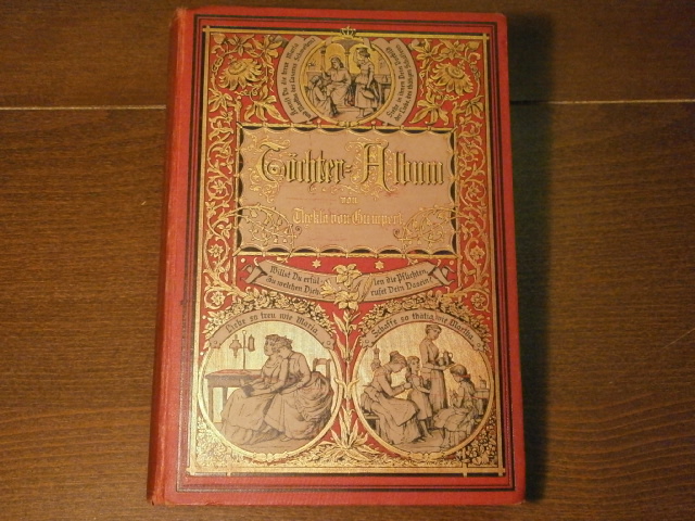 GUMPERT, Thekla von: (Hrsg.) Töchter-Album. 41. Bd. Unterhaltungen im häuslichen Kreise zur Bildung des Verstandes und Gemütes der heranwachsenden weiblichen Jugend. Glogau (Flemming), (1895). XVI, 574 (2) S. mit 19 Farbendruckbildern, 4 Tondruckbildern, 2 Karten und zahlr. Textabb. OLn mit reicher Goldprägung. Kanten gering berieben, Gelenke stabilisiert, gutes Ex.