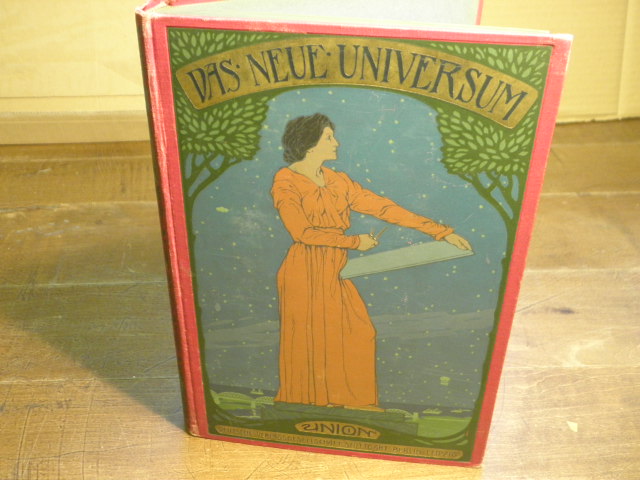DAS NEUE UNIVERSUM. Die interessantesten Erfindungen und Entdeckungen auf allen Gebieten, sowie Reiseschilderungen, Erzählungen, Jagden und Abenteuer. Stuttgart (Union), 1900. 394 S. mit sehr zahlr. z.T. farb. Abb. im Text + auf Tafeln sowie der farbigen Falttafel „Die Schwebebahn von Elberfeld“. ill. OLn. feines Ex. = Bd. 21. Das Neue Universum war eine Jugendbuchreihe. Ab 1880 erschien jährlich ein Band mit Themen aus den Bereichen Wissen, Forschung, Abenteuer, Unterhaltung. In den Jahren 1943 sowie 1945 bis 1947 wurden keine Bände veröffentlicht. 1958 erschien der Jubiläumsband 75. Im Jahr 2002 erschien nach 122 Jahren der letzte Band mit Nummer 119. Die Bände 1 bis 11 erschienen im W. Spemann Verlag, Stuttgart; die Bände 12 bis 90 im Union Verlag Deutsche Verlagsgesellschaft, Stuttgart-Berlin-Leipzig; die Bände 91 bis 119 im Südwest-Verlag, München. Außer Sachthemen druckte das Neue Universum auch fiktionale Texte. Bekannte Autoren wie Isaac Asimov und Hans Dominik und viele andere veröffentlichten so ihre Science-Fiction-Kurzgeschichten im Neuen Universum. Dabei zeichnen sich Themenwahl und inhaltliche Gestaltung durch einen starken Zukunfts-, Wissenschafts- und Machbarkeitsoptimismus aus. In den Jugendstilbänden hieß es im Untertitel: Ein Jahrbuch für Haus und Familie, besonders für die reifere Jugend, mit einem Anhang zur Selbstbeschäftigung „häusliche Werkstatt“. Später lautete der Untertitel des Jahrbuches „Ein Jahrbuch des Wissens und Fortschritts“, ab 1970 wurde es umbenannt in „Forschung, Wissen, Unterhaltung. Ein Jahrbuch“, ab 1985 hieß es „Ein Jahrbuch für Forschung, Wissen, Unterhaltung“. (Wikepedia)