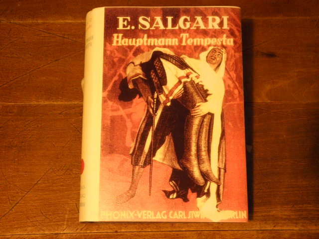 SALGARI, Emilio: Hauptmann Tempesta. Abenteuerroman. D.v. Franz Petersen. Berlin (Phönix), 1930. 317 (3) S. mit 1 Titelbild. OLn mit goldgeprägter Deckelbeschriftung und -vignette mit Umschlag in Farbkopie. leicht schief gelesen, vorderes Gelenk gelockert, fliegender Vorsatz fehlt, zwei Bibliotheksstempel. dt. EA.