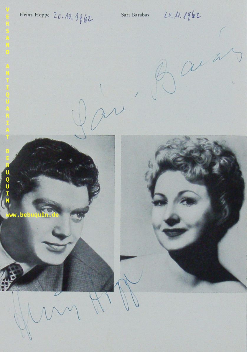STOLZ, Robert (Komponist): eigenhändig signiertes Programmheft: Allerherzlichst. An den jeweiligen Portraits ebenfalls signiert von Heinz Hoppe und Sari Barabas. München (BR), 20.10.1962. 21 x 15 cm. 8 S. mit zahlr. Bildern. OKart. Robert Elisabeth Stolz (* 25. August 1880 in Graz; † 27. Juni 1975 in Berlin) war ein österreichischer Komponist und Dirigent. (Wikipedia)
