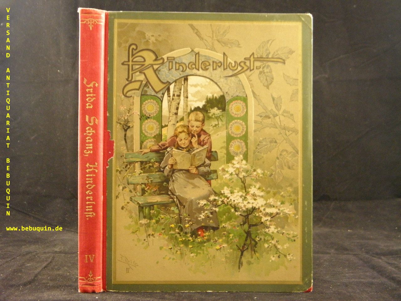 SCHANZ, Frida: (Hrsg.) Kinderlust. 4. Jg.– Ein Jahrbuch für Knaben und Mädchen von 8 bis 12 Jahren. Bielefeld (V&K), (1898). Gr.8°. 200 S. mit zahlr. Abb. + 12 lithographischen Bildtafeln. farb. ill. OHLn. Deckel mit kleinem Fehler, sonst feines Ex.
