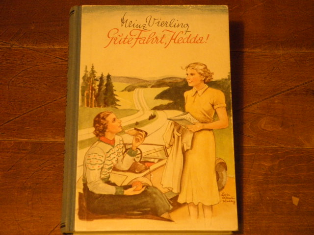 VIERLING, Heinz: Gute Fahrt, Hedda! Die Geschichte einer Autoreise. Berlin (Hanns-Jörg Fischer), ca 1940. 144 S. mit Titelbild von Pfennigwerth-Dresden. farb. ill. OHLn von Lotte Oldenburg-Wittig. Ex libris. EA.