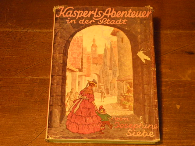 SIEBE, Josephine: Kasperles Abenteuer in der Stadt. Eine lustige Kaperle-Geschichte. 48. Aufl. Stuttgart (Herold), 1950. 187 (5) S. mit 4 farb. Vollbildern + 40 Textbildern von Ernst Kutzer. farb. ill. OHLn. mit OUmschl. Umschlag gering beschabt, sonst sehr schönes Ex. Klotz 6789/61.