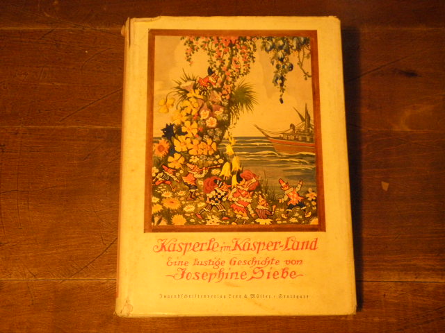 SIEBE, Josephine: Kasperle im Kasper-Land. Eine lustige Geschichte. 11. Aufl. Stuttgart (Levy & Müller), ca 1930. 201 (7) S. mit 4 farb. Vollbildern von Ernst Kutzer und zahlr. Scherenschnitten von Berta Werner. farb. ill. OLn. mit mont. Farbbild und OUmschl. Umschlag etwas bespielt, WaV, sonst tadellos. Klotz 6789/56.