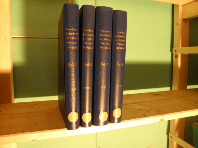 MEDIZIN.– PAWLOW, Ivan Petrovitch: Pawlow-Zeitschrift für höhere Nerventätigkeit. Bd. 5 – 8. 4 Bände. Berlin (Akademie), 1955-58. Gr. 8°. ca 2000 S. mit zahlr. Abb. OHLn mit goldgeprägten Rücken. Ordnungsgemäß aus den Beständen der Volkspolizei ausgesondertes Bibliotheksexemplar (Rückenschild, Stempel). zusammen für