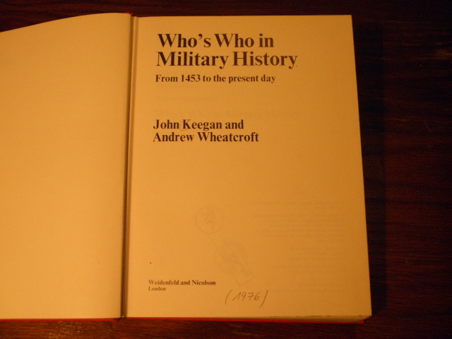 KEEGAN, John + WHEATCROFT, Andrew: : Who’s Who in Military History. From 1453 to the present day. London (Weidenfeld and Nicolson), 1976. Gr. 8°. 367 S. mit zahlr. Bildern und Karten. OLn. Ordnungsgemäß aus Bundeswehrbeständen ausgesondertes Bibliotheksexemplar (Stempel und Rückenschild). EA.