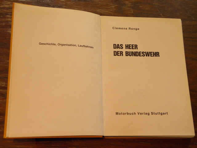 RANGE, Christian: Das Herr der Bundeswehr. Geschichte, Organisation, Laufbahnen. Stuttgart (Motorbuch), 1978. Gr. 8°. 291 S. mit zahr. Bildern. OLn. Ordnungsgemäß aus Bundeswehrbeständen ausgesondertes Bibliotheksexemplar (Rückenschild, Stempel). EA.