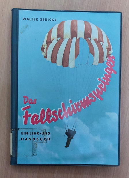 LUFTFAHRT.– GERICKE, Walter: Das Fallschirmspringen. Ein Lehr- und Handbuch. Wiesbaden (Tilia), 1962. 174 S. mit 187 Abb. + dem Abtriftrechner anbei. farb. ill. OPlast. Ordnungsgemäß aus Bundeswehrbeständen ausgesondertes Bibliotheksexemplar (Rückenschild, Stempel). EA. Walter Gericke (* 23. Dezember 1907 in Bilderlahe; † 19. Oktober 1991 in Alsfeld) war ein deutscher Offizier, der u. a. als Bataillonskommandeur der Fallschirmjäger an der Luftlandeschlacht um Kreta während des Zweiten Weltkriegs teilnahm. Später kommandierte er das Fallschirmjägerregiment 11 und nahm in Italien an der Schlacht von Anzio teil. Nach dem Krieg trat er im Zuge der Wiederbewaffnung in die Bundeswehr ein und befehligte von 1962 bis 1965 als Generalmajor die 1. Luftlandedivision. Er verfasste eine Reihe von teils propagandistischen Schriften über das Fallschirmspringen. (Wikipedia)