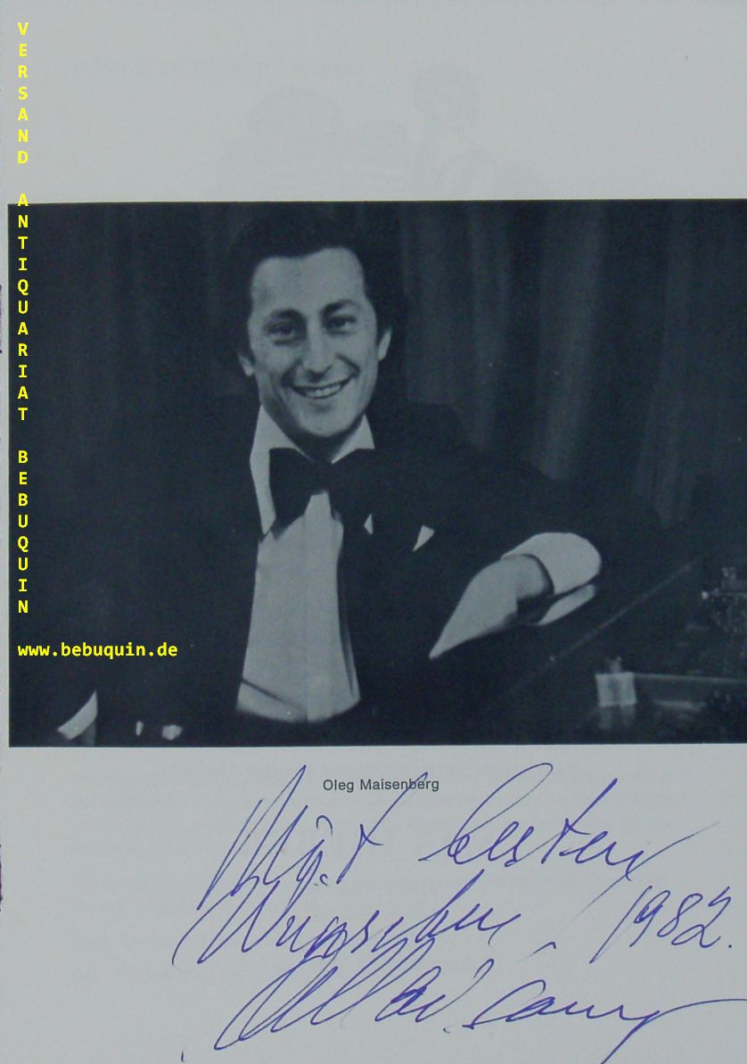 MAISENBERG, Oleg (Pianist): eigenhändig signierte und datierte Portraitseite: Mit besten Wünschen. München (Herkulessaal), 29.5.1982. 21 x 15 cm. 2 Bl. Oleg Iossifowitsch Maisenberg (* 29. April 1945 in Odessa) ist ein russischer Pianist und Professor an der Universität für Musik und darstellende Kunst in Wien. (Wikipedia)