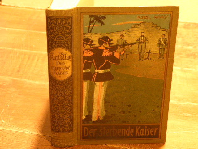 MAY, Karl: Der sterbende Kaiser. Roman. Hrsg. von E.A. Schmid und Franz Kandolf. 48.– 65. Tsd. Radebeul (Karl May), (1939). 476 (3) S. mit Frontispiz + 3 Tafeln. farb. ill. OLn. Einbandschrift etwas geblichen, Schnitt etwas fleckig. = Gesammelte Werke, Bd. 55. Hermesmeier /Schmatz GW 55.4.