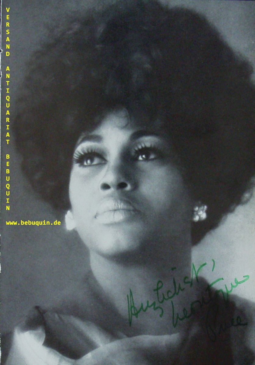 PRICE, Leontyne (Sopran): eigenhändig signierte Portraitseite. München (Herkulessaal), 26.11.1975. 21 x 15 cm. 3 Bl. + RCA- Fotoportraitkarte. (Die Titelseite des Programms mit einer anderen nicht identifizierten eigenhändigen Widmung vom gleichen Tag.)
