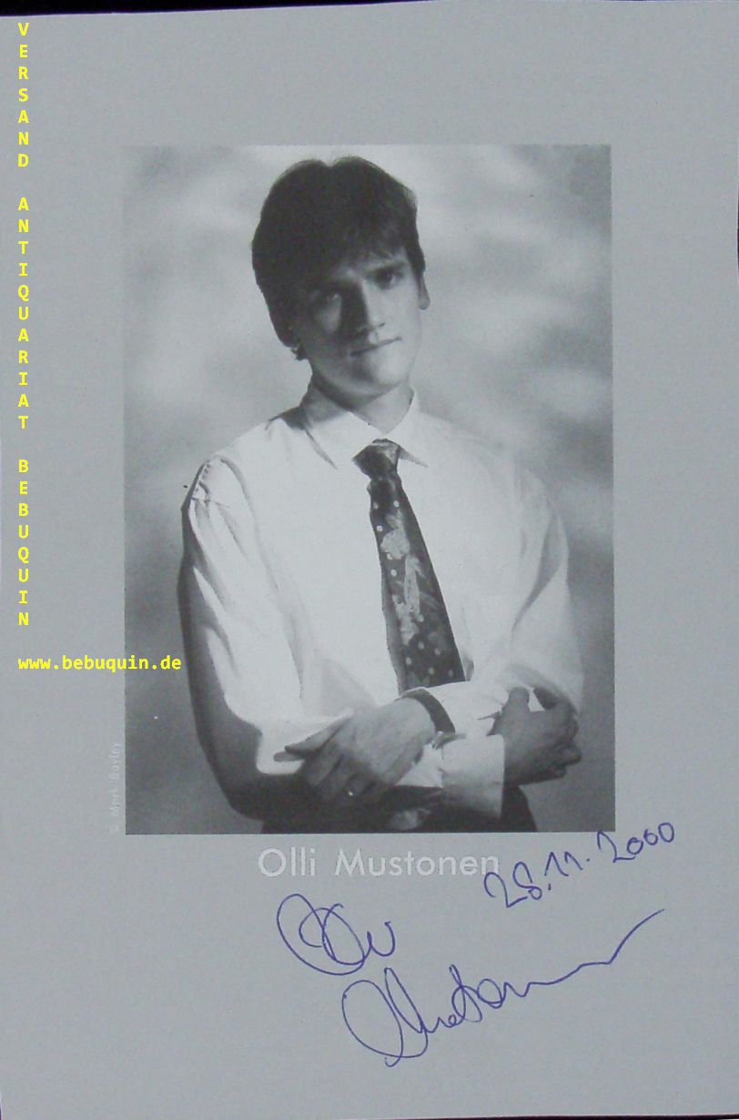 MUSTONEN, Olli (Pianist): eigenhändig datierte und signierte Portraitseite. München (Herkulessaal), 28.11.2000. 19 x 12,5 cm. 1 Bl. Olli Mustonen (* 7. Juni 1967 in Helsinki) ist ein finnischer Pianist, Dirigent und Komponist. (Wikipedia)