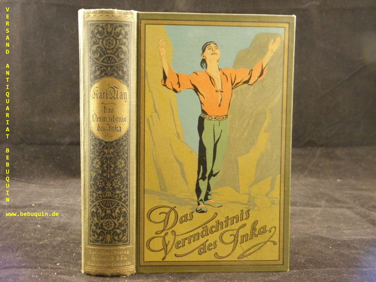 MAY, Karl: Das Vermächtnis des Inka. Erzählung aus Südamerika. 156.– 168. Tsd. Radebeul (Karl May), (1938). 580 (3) S. farb. ill. OLn. (Plaul 22). farbstarkes Ex. mit glänzendem Rückengold. Minimal schief. = Gesammelte Werke, Bd. 39. Hermesmeier / Schmatz GW 39.17.