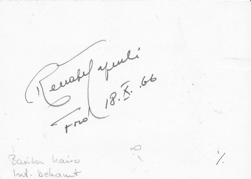 OPER.– CAPECCHI, Renato: eigenhändig signiertes und datiertes Albumblatt mit mont. Foto. o.O. 1966. 19 x 12,5 cm. s/W. Italienischer Bariton und Operndirektor. (1923 – 1998.)