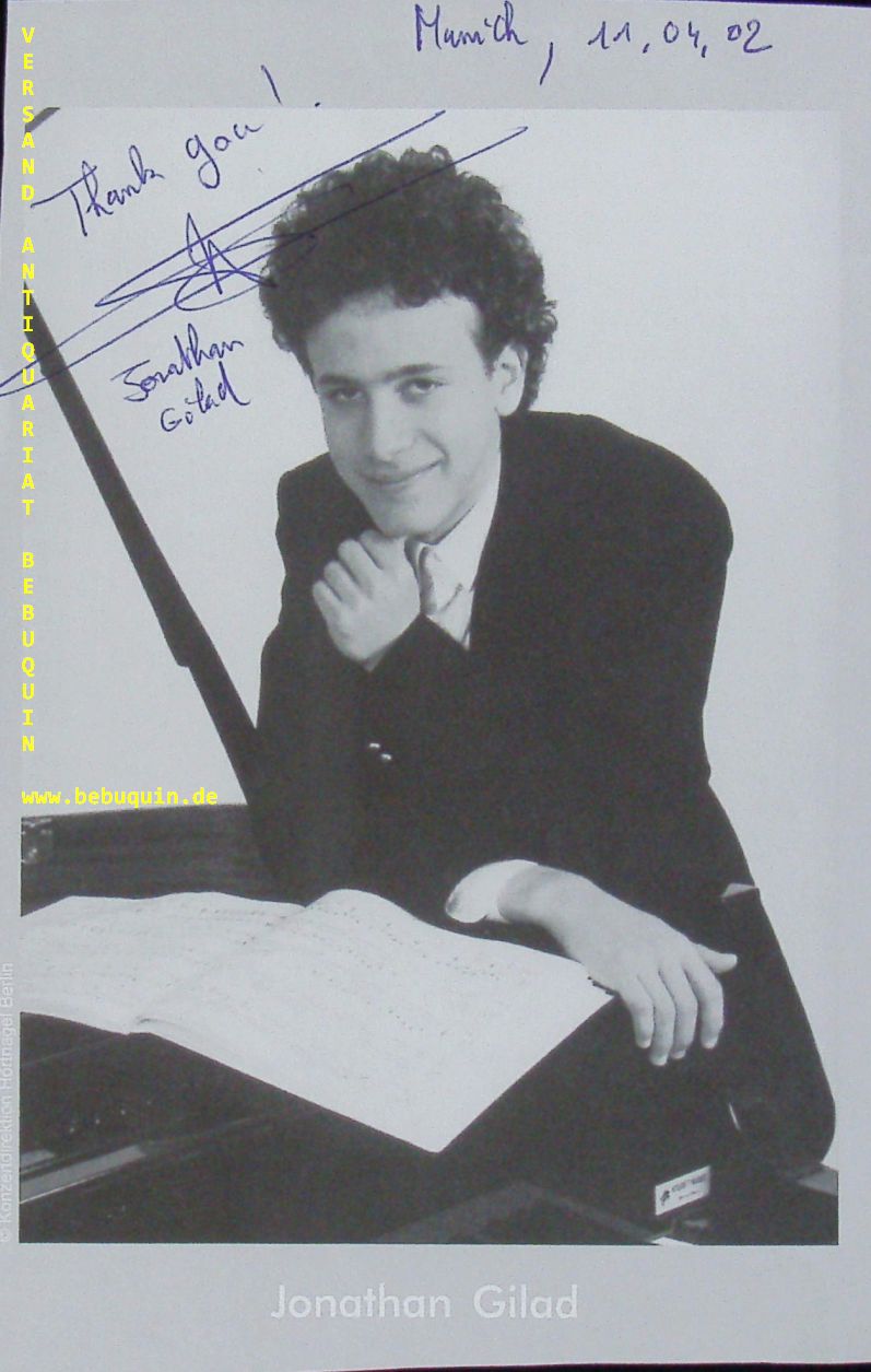 GILAD, Jonathan (Pianist): eigenhändig signierte und datierte Portraitseite: Thank you!. München (Herkulessaal), 11.4.2002. 19 x 12 cm. 1 Bl. Jonathan Gilad (* 17. Februar 1981 in Marseille) ist ein französischer Pianist. (Wikipedia)
