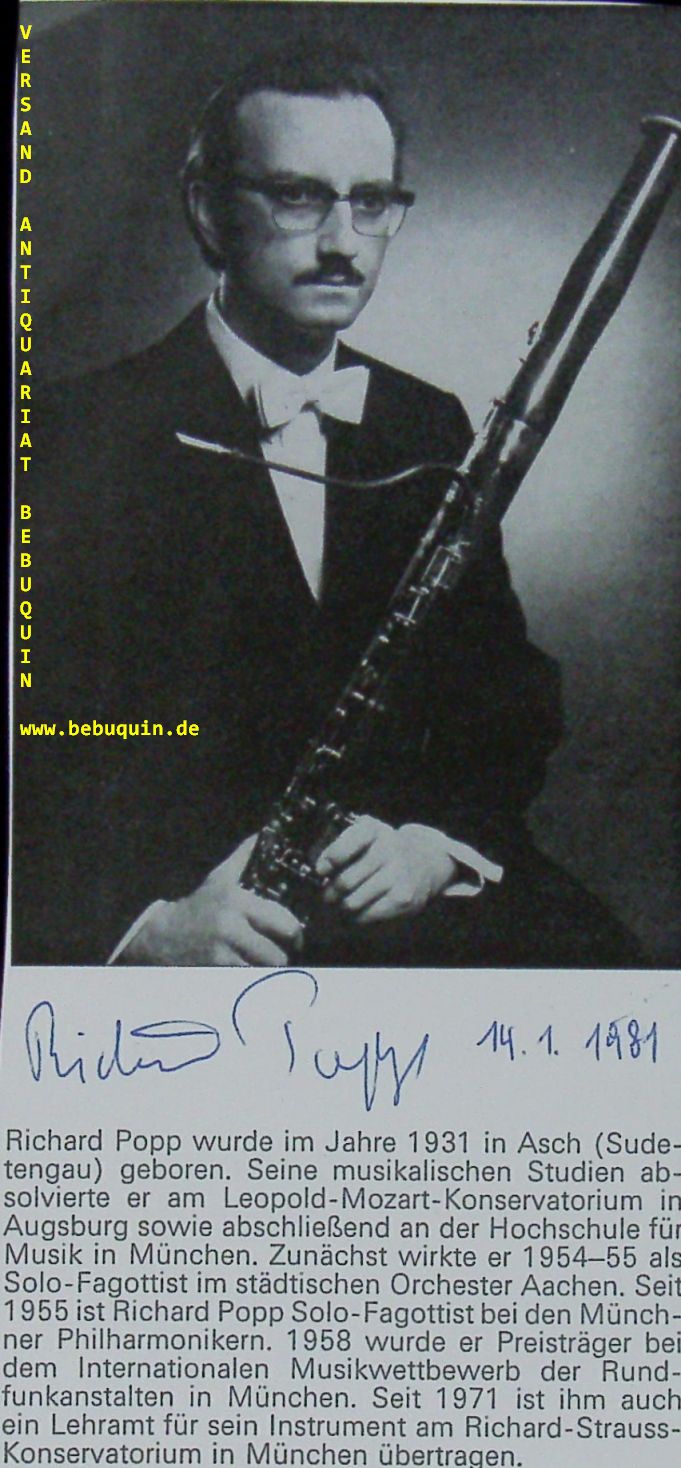 POPP, Richard (Fagottist): eigenhändig signierte und datierte Programmseite. München (Kongresssaal), 14.1.1981. 18 x 8,5 cm 1 Bl.