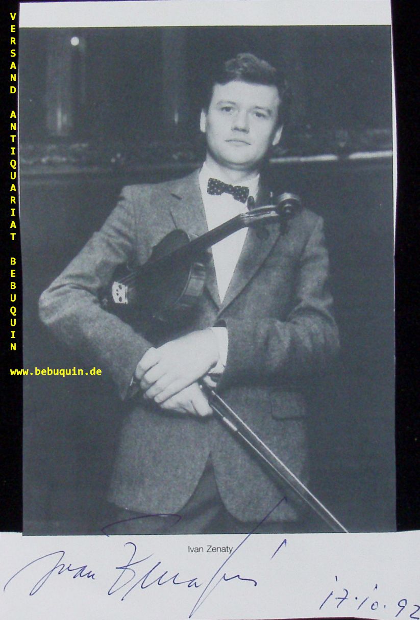 ZENATY, Ican (Violinist): eigenhändig signierte und datierte Portraitseite. München (Philharmonie), 17.10.1992. 19 x 13,5 cm. 1 Bl. Ivan Ženatý (born February 2, 1962) is a Czech violinist. (Wikipedia)