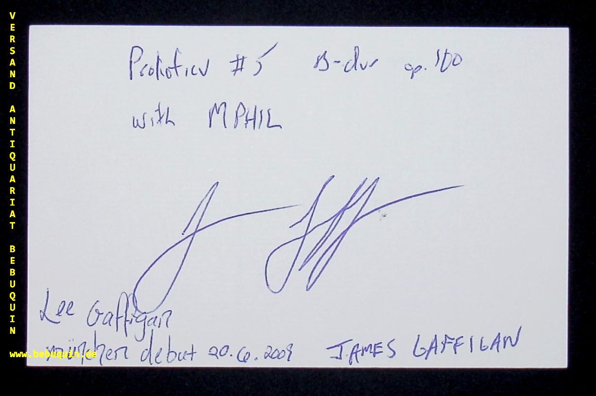 GAFFIGAN, James (Dirigent): eigenhändig signierte und datierte Autogrammkarte: München Debut. München, 20.6.2009. 8 x 12,5 cm. Karteikarte. James Gaffigan (* 1979 in New York City) ist ein amerikanischer Dirigent und Chefdirigent des Luzerner Sinfonieorchesters. (Wikipedia)