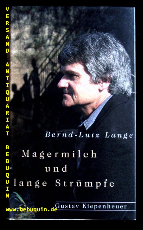 LANGE, Bernd-Lutz: Magermilch und lange Strümpfe. Leipzig (Kiepenheuer), 1999. 218 S. OPb mit OUmschl. tadellos. EA mit der eigenhändigen Signatur des Verfassers auf Titelseite sowie eine beiliegende signierte Autogrammkarte.