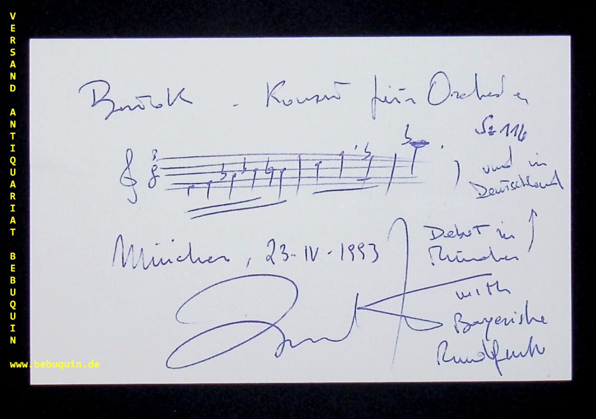 GATTI, Daniele (Dirigent): eigenhändig signierte und datierte Autogrammkarten: Debut in München und in Deutschland with Bayrischer Rundfunk mit Notenzitat. München (Philharmonie), 23.4.1993. 8 x 12,5 cm. Karteikarte. Daniele Gatti (* 6. November 1961 in Mailand) ist ein italienischer Dirigent.