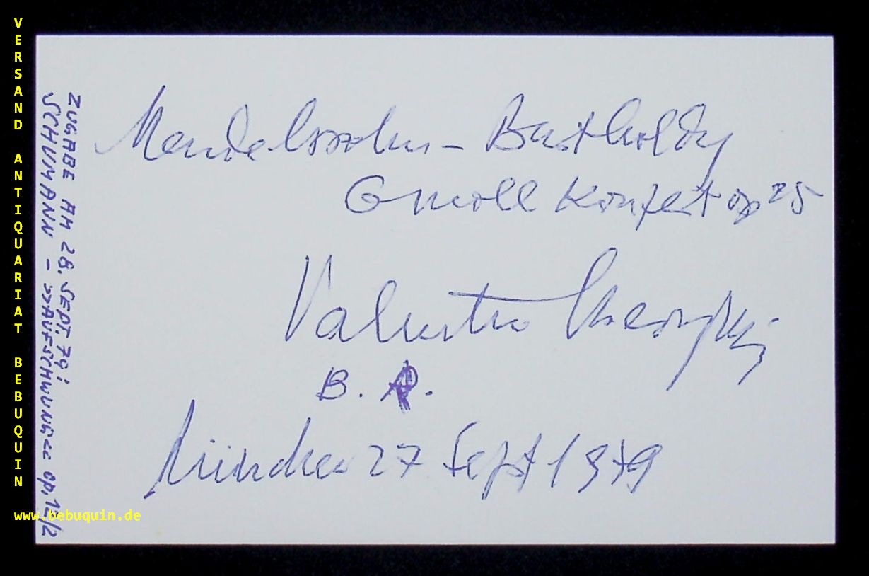 GHEORGHIU, Valentin (Pianist): eigenhändig signierte und datierte Autogrammkarten. München (Philharmonie), 27.9.1979. 8 x 12,5 cm. Karteikarte. Valentin Gheorghiu (born 21 March 1928) is a Romanian classical pianist and composer. (Wikipedia)