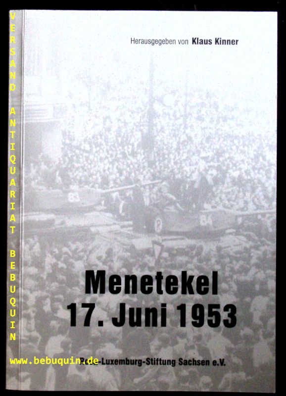DDR.– KINNER, Klaus: (Hrsg.) Menetekel 17. Juni 1953. Reader der Konferenzen der Rosa-Luxemburg-Stiftung Sachsen anläßlich des 50. Jahrestages des 17. Juni 1953. 4., durchges. und korr. Aufl. Leipzig (Rosa-Luxemburg-Stiftung), 2003. 333 S. ill. OKart.