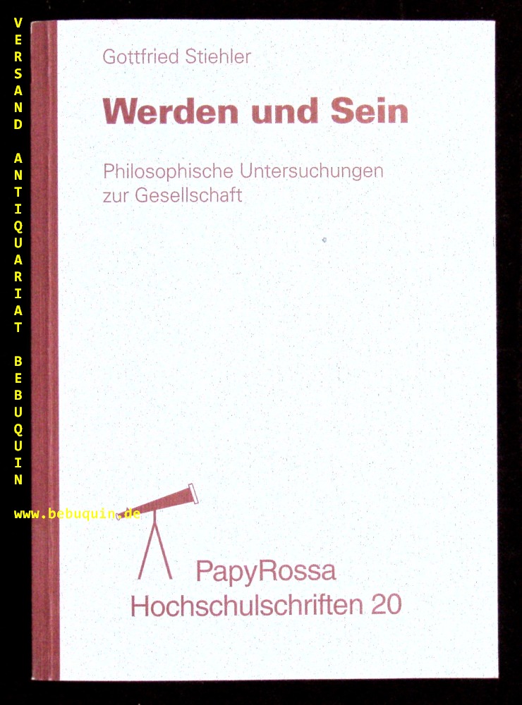 STIEHLER, Gottfried: Werden und Sein. Pphilosophische Untersuchungen zur Gesellschaft. Köln (PapyRossa), 1997. 303 S. OKart. tadellos. = PapyRossa-Hochschulschriften, 20. EA.