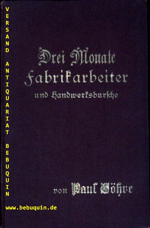 GÖHRE, Paul: Drei Monate Fabrikarbeiter und Handwerksbursche. Eine prakt. Studie. 2. Zehntsd. Leipzig (Grunow), 1891. Gr. 8°. 222 S. OLn. gutes Ex.