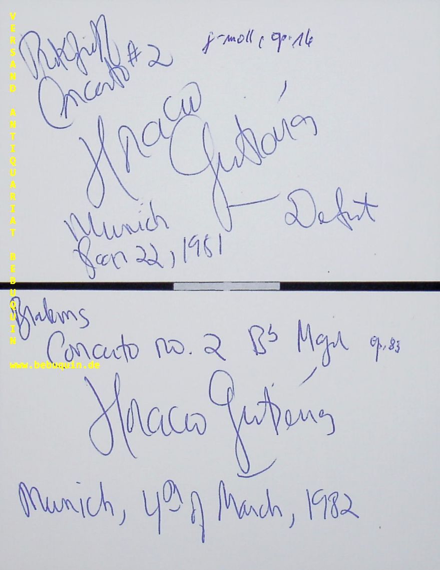 GUTIEREZ, Horacio (Pianist): 2 eigenhändig signierte und datierte Autogrammkarten. München (Herkulessaal), 22.1.1981 + 4.3.1982. 8 x 12,5 cm. 2 Karteikarten. Horacio Gutiérrez (* 28. August 1948 in Havanna) ist ein Kubanoamerikaner und klassischer Pianist.