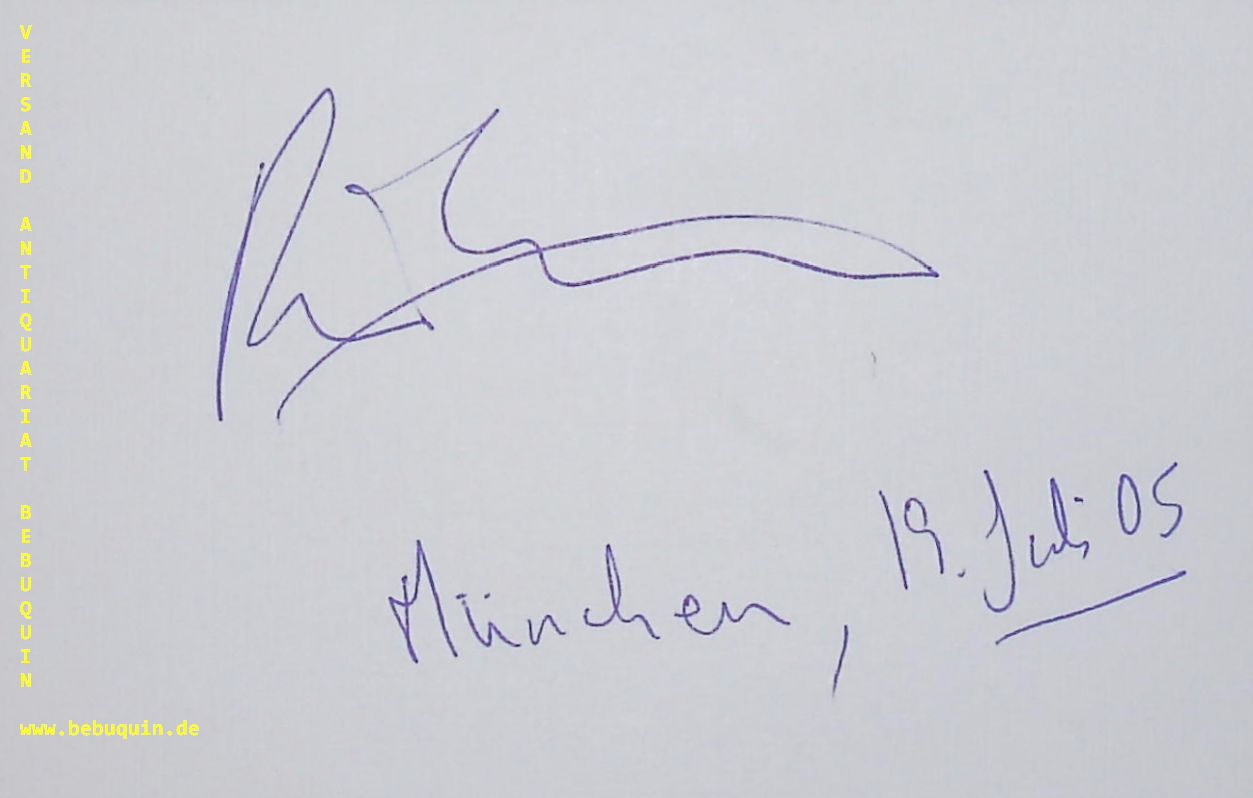 GULDA, Rico (Pianist): eigenhändig signierte und datierte Autogrammkarte. München, 19.7.2005. 8 x 12,5 cm Karteikarte. selten. Rico Gulda (* 9. April 1968) ist ein österreichischer Pianist, Kulturmanager und Produzent. Er wurde als dritter Sohn von Friedrich Gulda in Zürich geboren, wuchs in München auf und erhielt mit fünf Jahren seinen ersten Klavierunterricht. (Wikipedia)