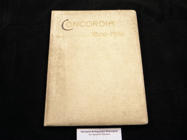 LEIPZIG.– BALLGESELLSCHAFT CONCORDIA: Festschrift zur Erinnerung an ihre 100jährige Jubelfeier Leipzig 17.November 1900. Leipzig (Giesecke & Devrient), 1900. 4°. 67 S. mit hellgrünen Bordüren und einigen hübschen kleinen Vignetten + 2 ganzseitige montierte Farbtafeln welche jeweils ein kostümiertes tanzendes Paar zeigenTänzer , hübsche goldene Vorsatzpapiere. OLdr. mit Goldprägung. Einband stärker angeschmutzt, innen tadellos. EA. Enthält die Festschriften von 1825 und 1875, das Festspiel zum 100. Jubiläum sowie die Verzeichnisse des Vorstandes und der Mitglieder sowie der bei der Feier anwesenden Personen.