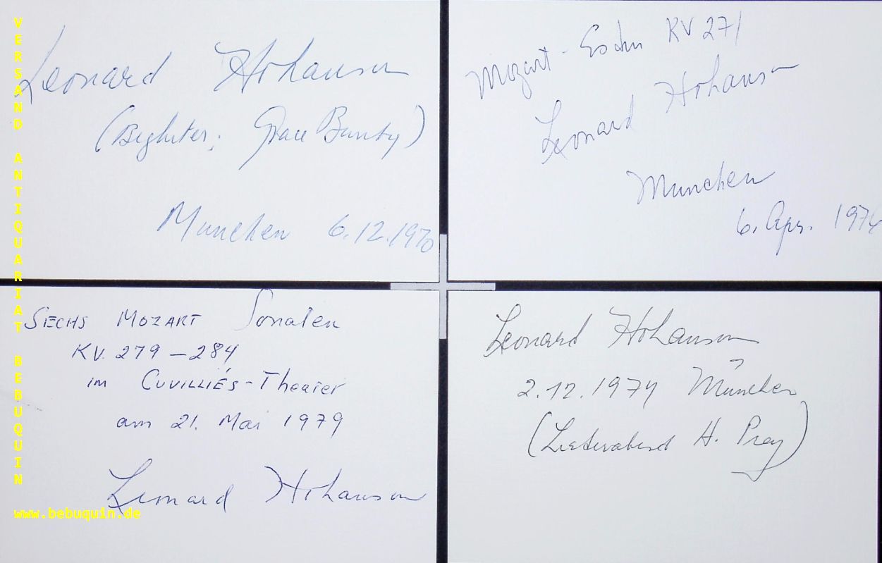 HOKANSON, Leonard (Pianist): 5 eigenhändig signierte und datierte Autogrammkarten. München (Philharmonie), 1970 – 1979. 8 x 12,5 cm. 5 Karteikarten.