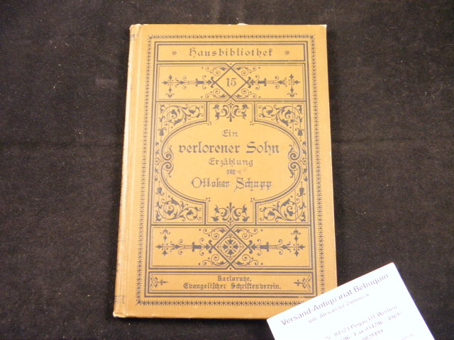SCHUPP, Ottokar: Ein verlorener Sohn. Karlsruhe (Evangelischer Schriftenverein), ca 1880. 79 (1) S. ill. OLn. mit reicher Schwarzprägung. tadellos = Hausbibliothek 15. EA des Pfarers von Oberndorf an der Lahn. Ottokar Wilhelm Schupp (* 25. August 1834 in Grebenroth; † 1. Mai 1911 in Wiesbaden-Sonnenberg)[1] war Pfarrer und Volksschriftsteller. (Wikipedia)