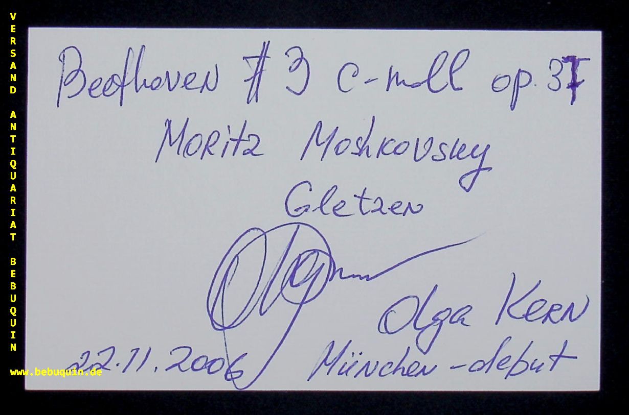 KERN, Olga (Pianistin): eigenhändig signierte und datierte Autogrammkarte: München – debut. München 22.11.2006. 8 x 12,5 cm. Karteikarte. Olga Wladimirowna Kern (* 23. April 1975 in Moskau, Sowjetunion) ist eine russische Pianistin. (Wikipedia)