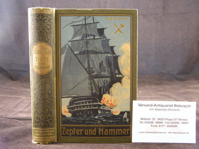 MAY, Karl: Zepter und Hammer. Roman hrsg. von E.A. Schmid. 1.– 20. Tsd. Radebeul (Karl May), 1926. 582 (2) S. farb. ill. OLn. Kanten minimal berieben, sonst schönes farbstarkes Ex. = Gesammelte Werke, Bd. 45. Hermesmeier / Schmatz GW 45.1.