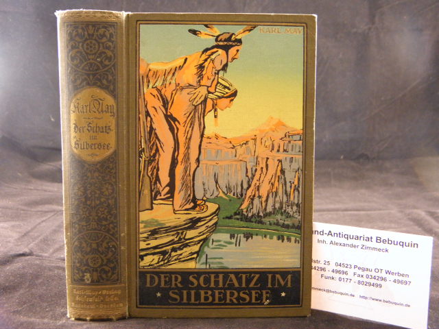 MAY, Karl: Der Schatz im Silbersee. 155.– 170. Tsd. Radebeul (Karl May), (1929). 628 S. farb. ill. OLn. NaV, NaT. = Gesammelte Werke, Bd. 36. sehr seltene Leinenausgabe Hermesmeier / Schmatz GW 36.18 P.