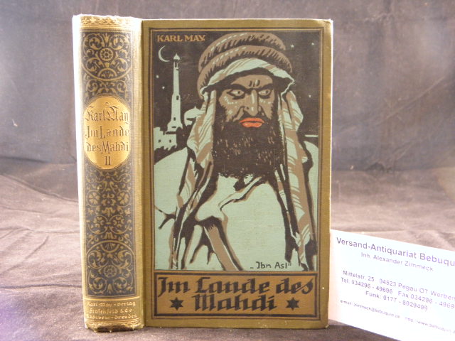 MAY, Karl: Im Lande des Mahdi. II. Band. Reiseerzählung. 83.– 90. Tsd. Radebeul (Karl May), (1929). 587 (1) S. farb. ill. OLn. vorderes Gelenk gelockert, sonst feines Ex. mit goldglänzendem Rücken. = Gesammelte Werke, Bd. 17. Hermesmeier / Schmatz GW17.13.