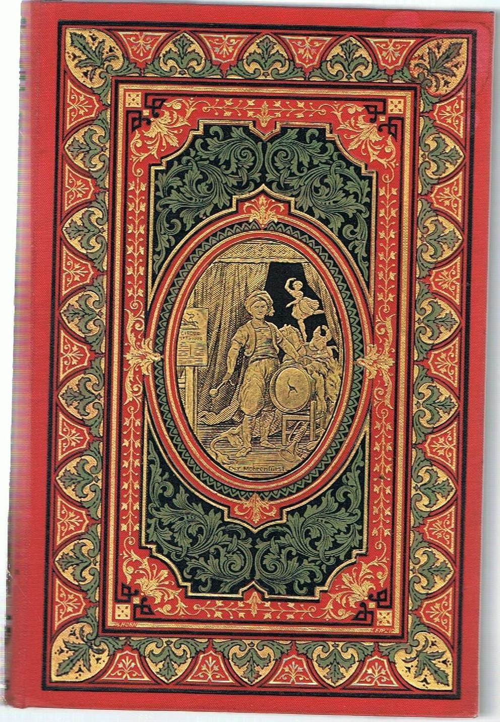 EINBAND.– FREILIGRATH, Ferdinand: Gedichte. 45. Aufl. Stuttgart (Cotta), 1885. kl. 8°. VIII, 348 S. Rote Gold-bunt-schwarzgeprägte Oln mit goldgeprägtem Medaillon auf Deckel. Rückseite nur schwarzgeprägt. 3 seitiger leuchtend goldener Schnitt. Geblümte intakte Vorsätze. feines Ex.