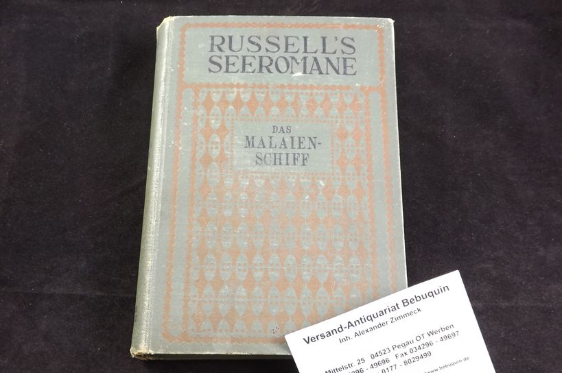 RUSSELL, Clark: Das Malaienschiff. D.v. Alfred Peuker. Stuttgart (Lutz), ca 1900. 248 S., 7 Bl. ill. OLn. NaV, etwas bestaubt und muffig. = Russell’s Seeromane, Bd. 11. dt. EA.