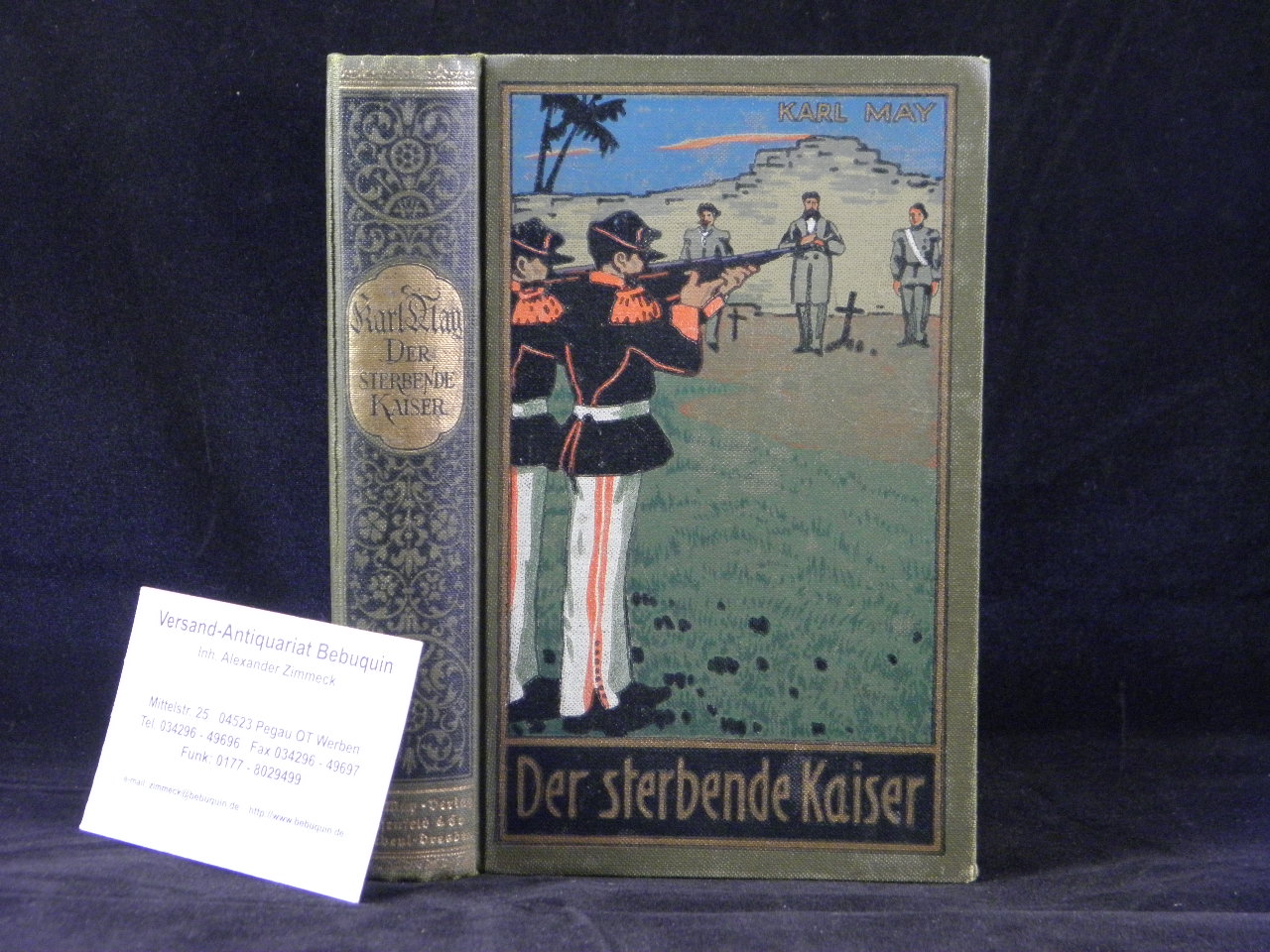 MAY, Karl: Der sterbende Kaiser. Roman. Hrsg. von E.A. Schmid und Franz Kandolf. 48.– 65. Tsd. Radebeul (Karl May), (1939). 476 (3) S. mit Frontispiz + 3 Tafeln. farb. ill. OLn. schönes Ex. mit goldglänzendem Rücken = Gesammelte Werke, Bd. 55. letzte Auflage Hermesmeier /Schmatz GW 55.4.