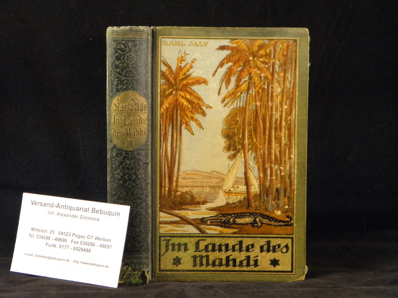 MAY, Karl: Im Lande des Mahdi. III. Band. 47.– 59. Tsd. Radebeul (Karl May), (1920). 566 (2) S. farb. ill. OPb (DB 38b). unteres Kap angeplatzt, beide Gelenke gelockert, NaT. = Gesammelte Werke, Bd. 18.