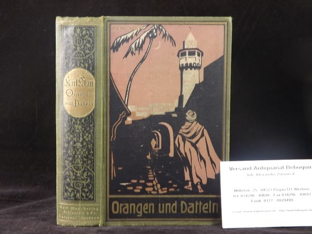 MAY, Karl: Orangen und Datteln. Reiseerzählung. 101.– 106. Tsd. Radebeul (Karl May), (1926). 665 (2) S. farb. ill. OLn. Rücken mit feiner Knickfalte, vorderes Gelenk gelockert, insgesamt gut erhalten. = Gesammelte Werke, Bd. 10. Hermesmeier / Schmatz GW10.15.