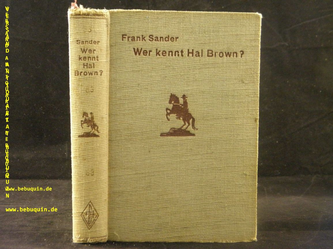 SANDER, Frank: Wer kennt Hal Brown? Bremen (Burmester), ca 1935. 240 S. ill. OLn. NaV, leicht gelockert. = Burmester’s Abenteuer-Serie. EA. Frank Sander hieß in Wirklichkeit Otto Neitsch und war Berliner Senator. Geboren 1892 in Eckernförde, Vater dreier Söhne und gestorben 1941 in Berlin.