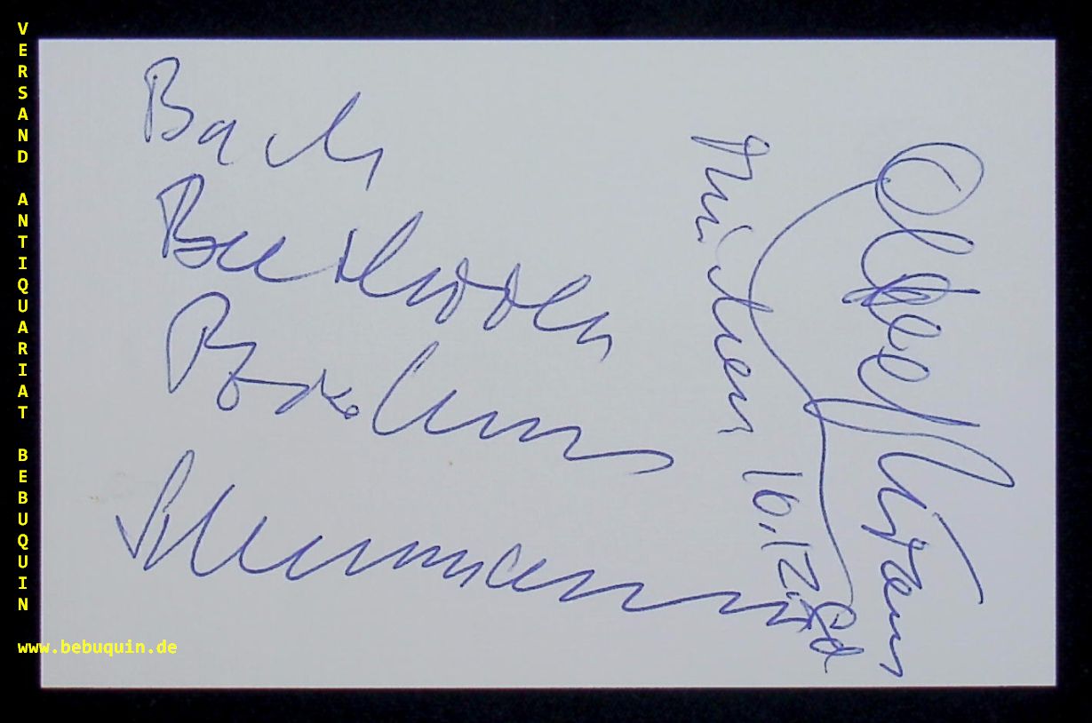 KRAUS, Detlef (Pianistin): eigenhändig signierte und datierte Autogrammkarte. München (Philharmonie), 10.12.1980. 8 x 12,5 cm. Karteikarte. Detlef Kraus (* 30. November 1919 in Hamburg; † 7. Januar 2008 ebenda) war ein deutscher Pianist. Er war ein weltweit angesehener Brahms-Interpret. (Wikipedia)