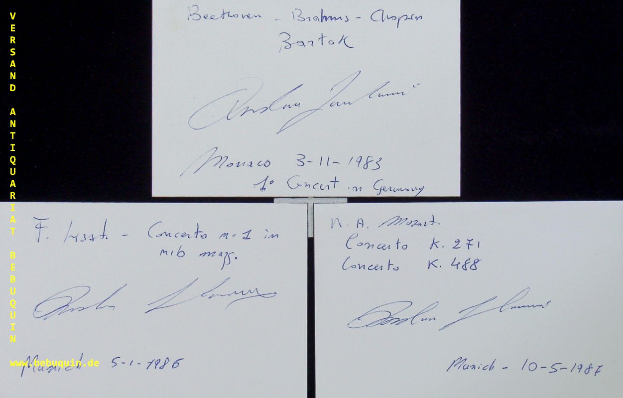 LUCCHESINI, Andrea (Pianist): 3 eigenhändig signierte und datierte Autogrammkarten. München (Herkulessaal), 1983 – 1987. 8 x 12,5 cm. 3 Karteikarten. Andrea Lucchesini (* 1965 in Massa e Cozzile) ist ein italienischer Pianist. (Wikipedia)