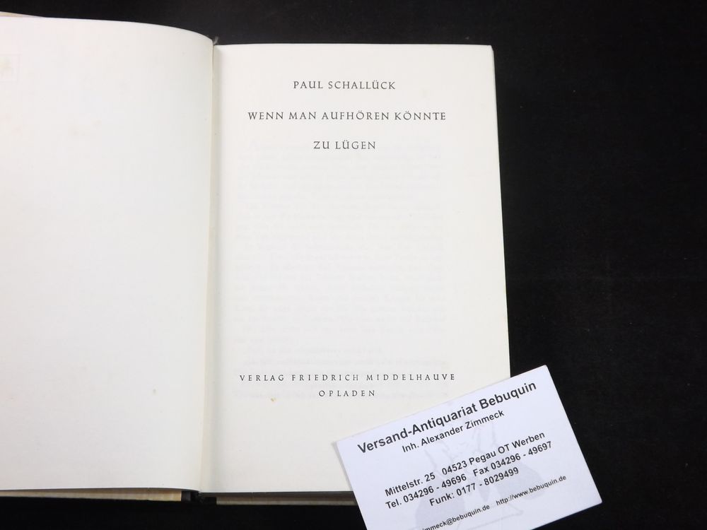 SCHALLÜCK, Paul: Wenn man aufhören könnte zu lügen. Opladen (Middelhauve), 1951. 270 (2) S. OHLn. leicht gebräunt. EA des Erstlings WG² 1 mit der eigenhändigen, datierten Signatur des Autors auf Vorsatz.