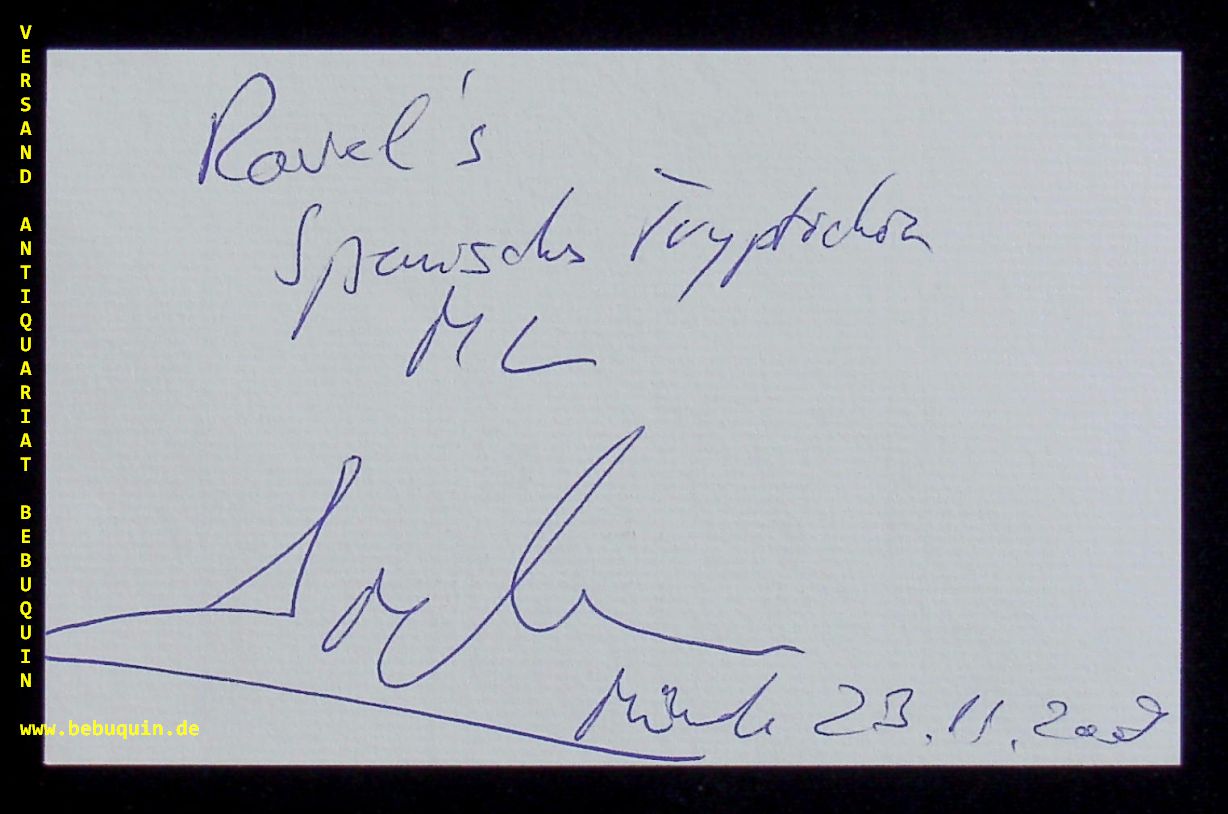 MARIN, Ion (Dirigent): eigenhändig signierte und datierte Autogrammkarte. München (Philharmonie), 23.11.2009. 8 x 12,5 cm. Karteikarte. Ion Marin (born 8 July 1960) is a Romanian-Austrian conductor. He is internationally renowned both in operatic and symphonic domains. (Wikipedia)