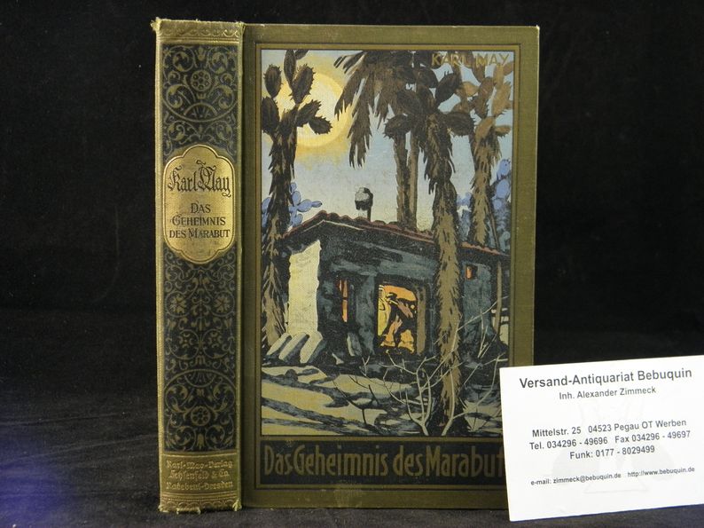 MAY, Karl: Das Geheimnis des Marabut. Hrsg. von E.A. Schmid und Franz Kandolf.. Radebeul (Karl May), 1930. 444 (3) S. farb. ill. OLn. leicht schief gelesen, Ecken gering berieben, mit goldglänzendem Rücken. = Gesammelte Werke, Bd. 57. EA. Hermesmeier / Schmatz GW 57.1. (2. Teil der 1883 veröffentlichten Erzählung DIE LIEBE DES ULANEN)