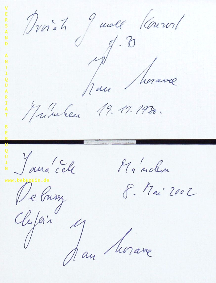 MORAVEC, Ivan (Pianist): 2 eigenhändig signierte und datierte Autogrammkarten. München (Herkulessaal), 19.11.1980 + 8.5.2002. 8 x 12,5 cm. 2 Karteikarten. Ivan Moravec (* 9. November 1930 in Prag; † 27. Juli 2015 ebenda) war ein klassischer Pianist. (Wikipedia)